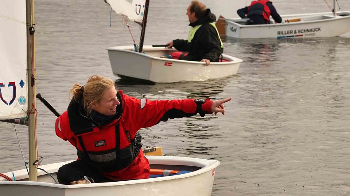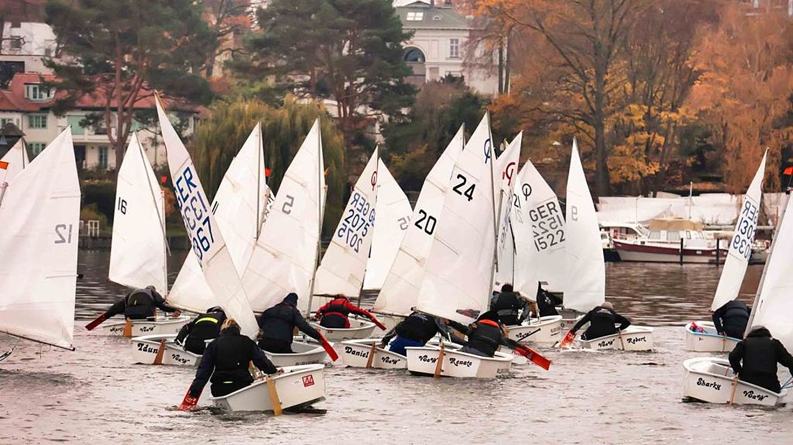 Beim Eis-Cup ist es genau andersherum. Die Erwachsenen steigen in die Optimisten-Boote ihrer Kinder und versuchen, gute Plätze zu erreichen. Die Kinder richten das Regattafeld aus, fungieren etwa als Jury und geben den segelnden Erwachsenen Tipps.