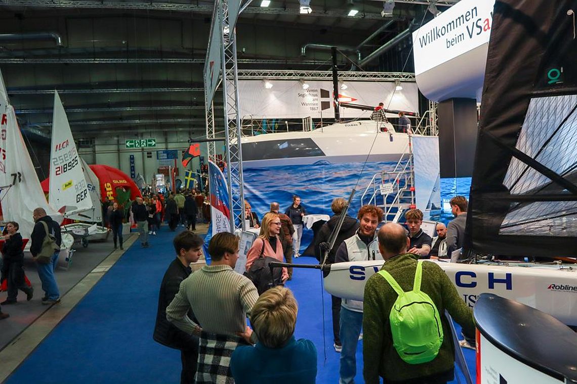 Mit der „Gaia“, einer Sun Fast 30 OD, von Lina Rixgens und ihrem Segelpartner Sverre Reinke (TSVS) stand ein Aushängeschild des Offshore-Racings auf unserem Stand. Außerdem war das Segel zu sehen, mit dem Julia Büsselberg im letzten Jahr bei den Olympischen Spielen von Paris 2024 in Marseille gesegelt ist: Deutschland-Flagge, Olympia-Design und die Ringe im Segel - echtes Olympia-Flair im kalten Berlin. Ein weiterer Blickfang war die foilende Switch, die nach ihrer Taufe auf der letztjährigen BOOT und FUN auch in diesem Jahr wieder zu sehen war.