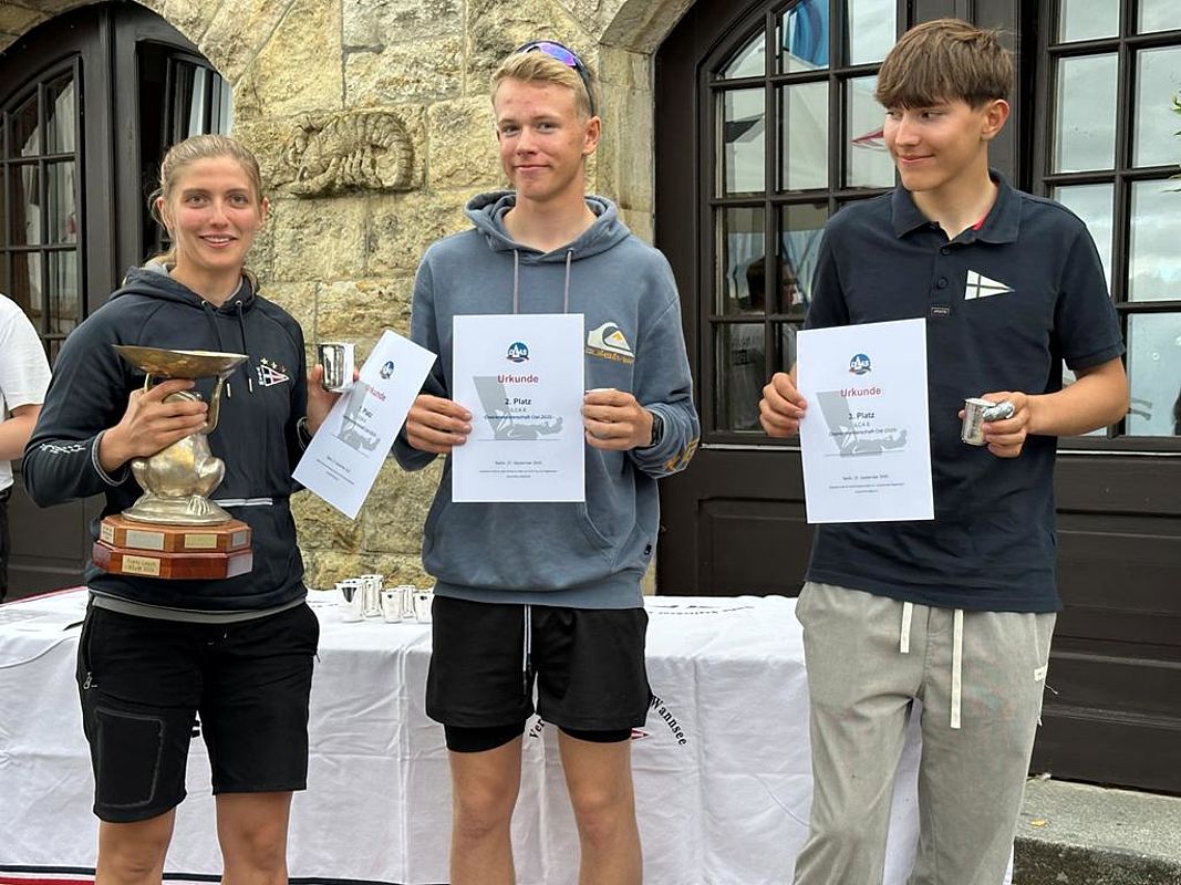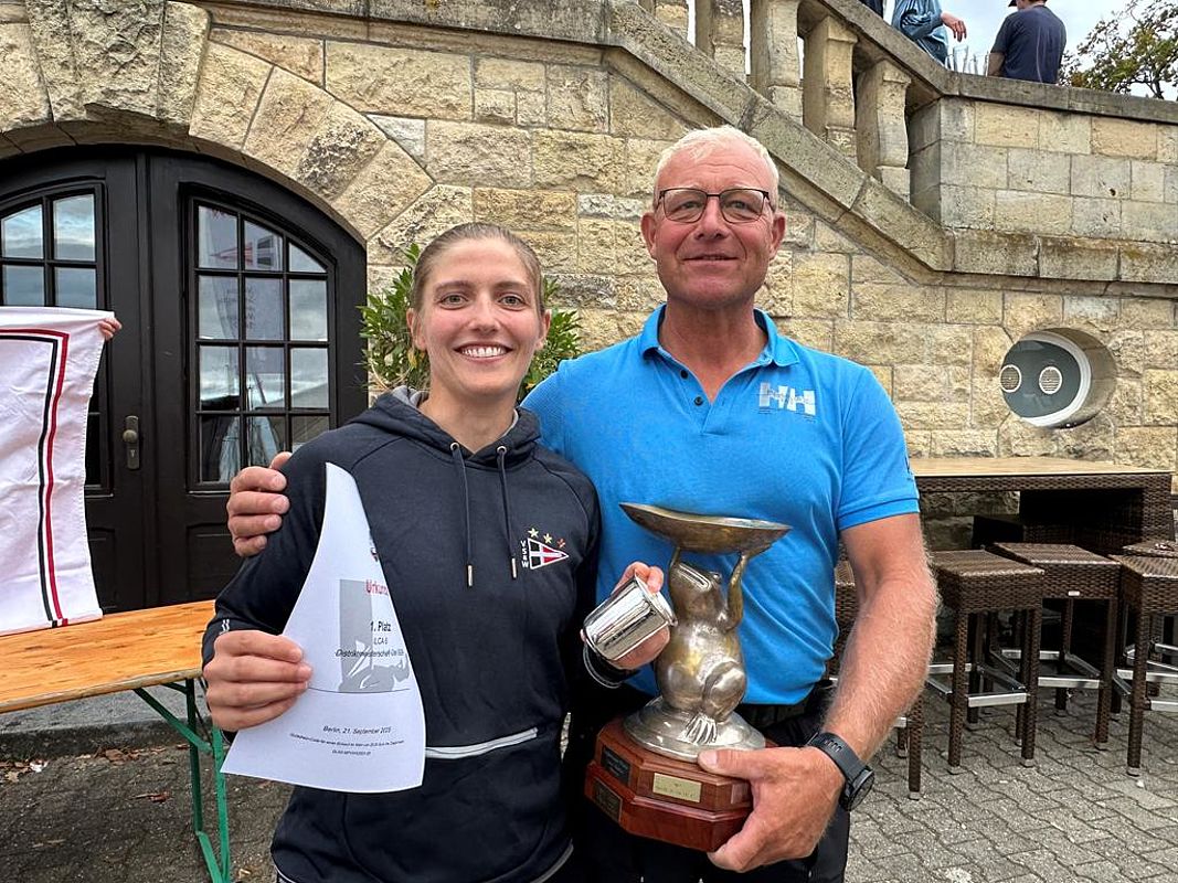 Der Sonntag war windmäßig etwas besser aufgestellt; die 420er und ILCAs schafften aber leider auch nur zu 2 Rennen, die 29er am Schluss auf drei. Julia zeigte sich gut aufgelegt auf dem Wasser; sie hat mit ihrem ‚alten‘ Opti-Trainer Harald Weichert an ihrer Seite den Seglerhaus-Preis 2025 bei den ILCA 6 gewonnen.