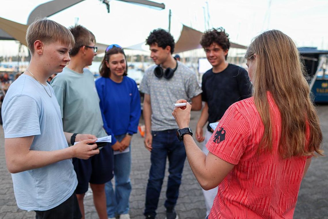 Für besondere Begeisterung sorgte zudem die Verlosung eines exklusiven Segeltrainings mit ihr, das ein glückliches 420er-Team aus dem PYC für sich gewinnen konnte.