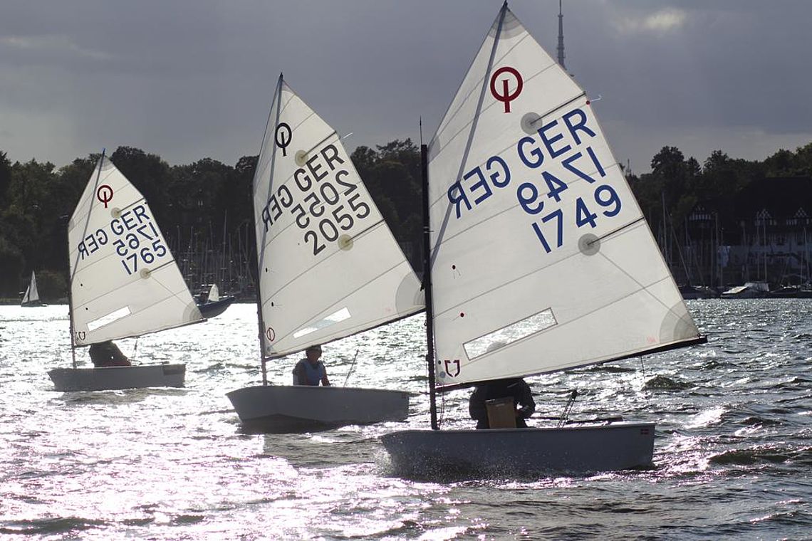 Am 16. September 2025 fand die erste Runde des diesjährigen WENTZEL-Pokals statt. Guter Wind, für einige kleinere Optis womöglich doch zu stürmisch, ermöglichte zwei schnelle Wettfahrten; ganz anders als in den letzten Jahren - da war der WENTZEL-Pokal eher von Flaute geprägt. Schon im Zwischenergebnis führten wie traditionelle üblich die Optis die Liste an. Die Großen mit ihren ILCAs, 29ern und 420ern mussten noch einiges gut zu machen, wenn einer von ihnen den Gesamtsieg erringen wollte. Zu gut ist der Yardstick-Faktor für die Optis bei den recht kurzen Wettfahrten. Es blieb also spannend.