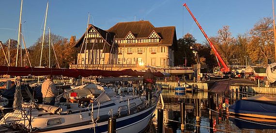Pünktlich um 7:00 Uhr stand am vergangenen Mittwoch der große Mobilkran zur Verfügung; das Aufslippen der großen Boote konnte beginnen. Der uns bekannte und bewährte Kranführer machte seine Arbeit glänzend; mit Hilfe der Mannschaft der Freiwilligen unter der Leitung von Lars Haverland wurden Zug um Zug die Boote auf ihre Plätze gestellt. Donnerstag kurz vor Mittag kam noch das letzte Boot ins Trockene, womit diese Slipp-Arbeiten erfolgreich abgeschlossen wurden.