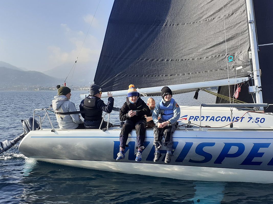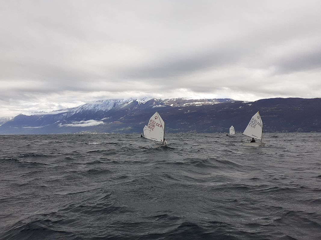 Die Opti As waren am südlichen Gardasee in Italien. Dort kamen sie bei einem Verein unter, mit dem sie auch trainieren konnten. Auf andere Segler zu treffen, denen man nicht jedes Wochenende auf dem Regattakurs begegnet, tut gut und hilft im Training. Gerade wenn die Trainingspartner, wie die Italiener, meist vorne im Feld unterwegs sind. Der südliche Gardasee ist nicht so bekannt als Revier wie der Norden, aber im Winter eine echte Alternative. In Riva und Arco ist es deutlich kühler und die bekannten Winde setzen im Winter nicht ganz wie gewohnt ein. Die Opti As konnten sich nicht über den Wind beklagen. Sie hatten alle möglichen Windbedingungen, wenig, mittel und auch mal viel. An einem Tag mit leichtem Wind stiegen sie auf einen etwas größeren schwimmenden Untersatz um. Mit richtigem Groß, Fock und Spinnaker fuhr das ganze Team über den See und schnupperte mal höhergelegene Seeluft. Am Ende des Trainingslagers ließen die WANNSEEATEN ihre Boote dort, da sie Ende Februar an einer Regatta dort teilnehmen, um ihr Winterprogramm abzurunden.