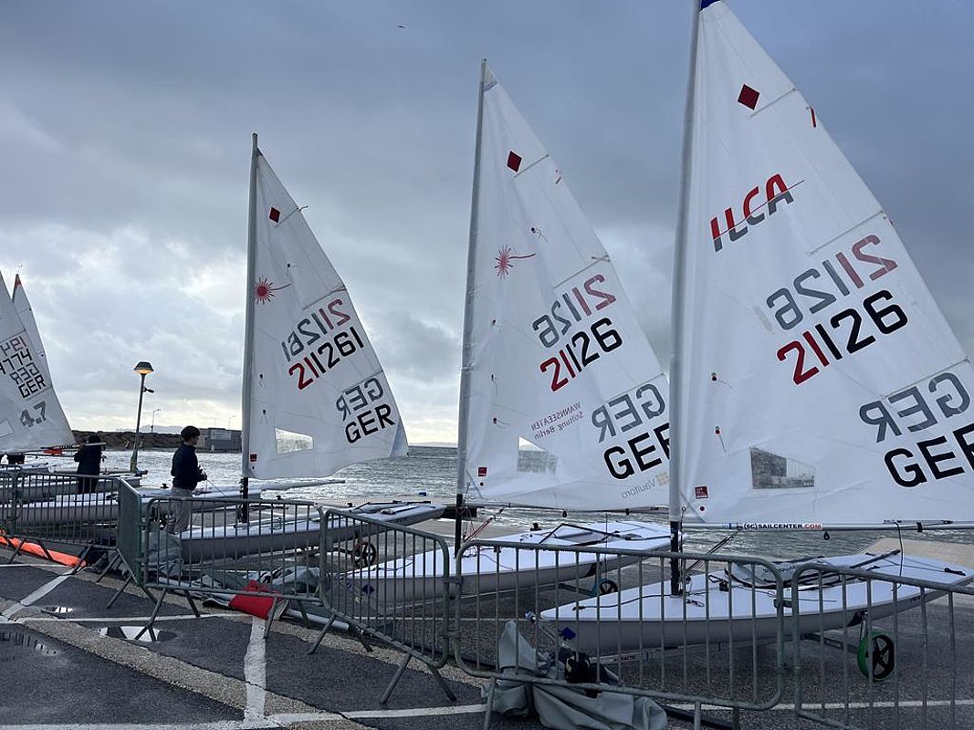 Die ILCAs waren hingegen im südfranzösischen Hyères unterwegs. Der Ort ist den meisten bekannt als Austragungsort der SOF. Die Hinfahrt dorthin dauerte allerdings länger als geplant, da sie mit ihrem Bus auf der Autobahn liegenblieben. Dabei war dieser in der vorherigen Woche in der Inspektion gewesen. Technik die begeistert. Zum Glück waren sie noch nicht weit gekommen (bis kurz hinter Gera) und konnten mit dem anderen Bus weiterfahren, der ihnen aus Berlin gebracht wurde. Mit leichter Verspätung in Frankreich angekommen, wurden sie von guten Winden begrüßt: meist über zehn Knoten, gerne aufwärts. Einen „Sturm-Tag“, wie er in Hyères traditionell dazugehört, hatten die WANNSEEATEN nicht. Sie konnten jeden Tag aufs Wasser gehen. In Kooperation mit dem BSV-Landeskader waren auch gute Sparringspartner vor Ort. Nur der letzten Tag, der mit Flaute begann, musste aufgrund eines großen Gewitters seglerisch abgesagt werden. Stattdessen wurde früher verladen und die Zeit für einen Ausflug nach Saint Tropez genutzt. Ein eher ernüchterndes Unterfangen, da der Ort wie ausgestorben war. Selbst der zufällig zu dem Zeitpunkt stattfindende Karnevalsumzug änderte an dem Eindruck nicht allzu viel.