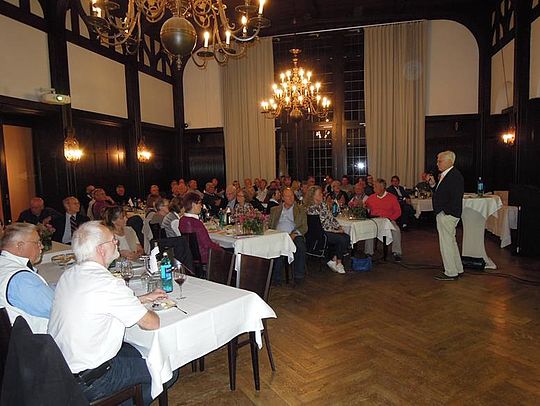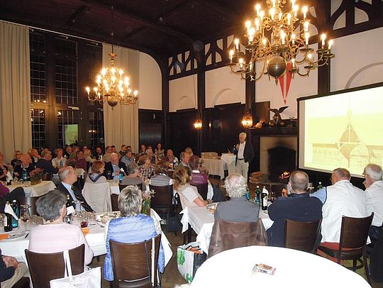 Trotz der über Tag nach wie vor sommerlichen Temperaturen brannte abends der Kamin im Großen Saal. Anlass war die Präsentation der neuen Broschüre über das alte Seglerhaus - dem heutigen Werft- und Jugendgebäude.