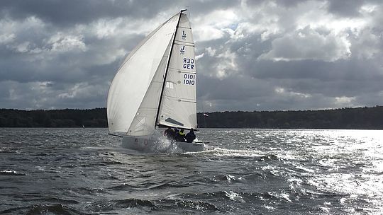 Die Teilnehmer konnten sich über mangelnden Wind gestern am Tag der Einheit nicht beklagen, mit Winden teils über 30kn fegte eine Kaltfront über Berlin hinweg, die für reichlich Arbeit auf dem Wasser sorgte. Knapp die Hälfte der 114 gemeldeten Boote zog es vor, nicht an den Start zu gehen.
