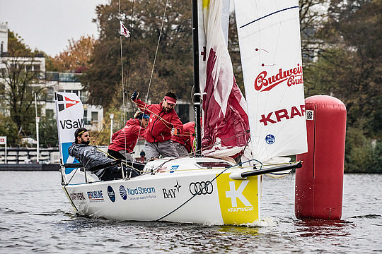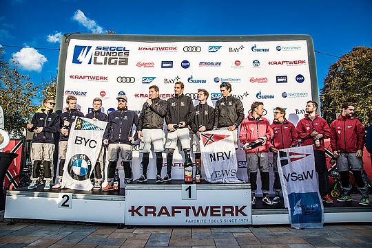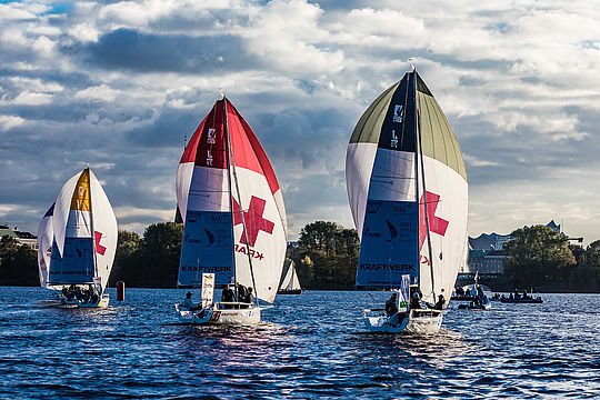 Nach den Spieltagen in Friedrichshafen, Tutzing, Travemünde, Berlin und Kiel wurde gestern in Hamburg der beste Club Deutschlands zum Deutschen Meister gekürt - auf der Außenalster fand das große Finale der Deutschen Segel-Bundesliga statt. Beste Chancen auf den Titel hatten die Lokalmatadoren und amtierenden Meister vom Norddeutschen Regatta Verein (NRV) und der Gesamttabellen-Zweite, der Bayerische Yacht-Club (BYC); sie lagen so dicht beieinander, dass im Kampf um den Meistertitel die Entscheidung erst in letzter Minute fallen sollte. Der Thriller konnte von Zuschauern vor Ort beim Public Viewing auf einer Großbildleinwand mit verfolgt werden.