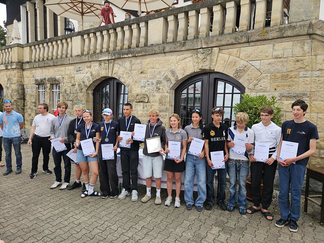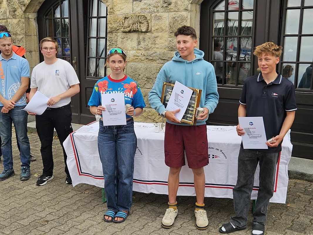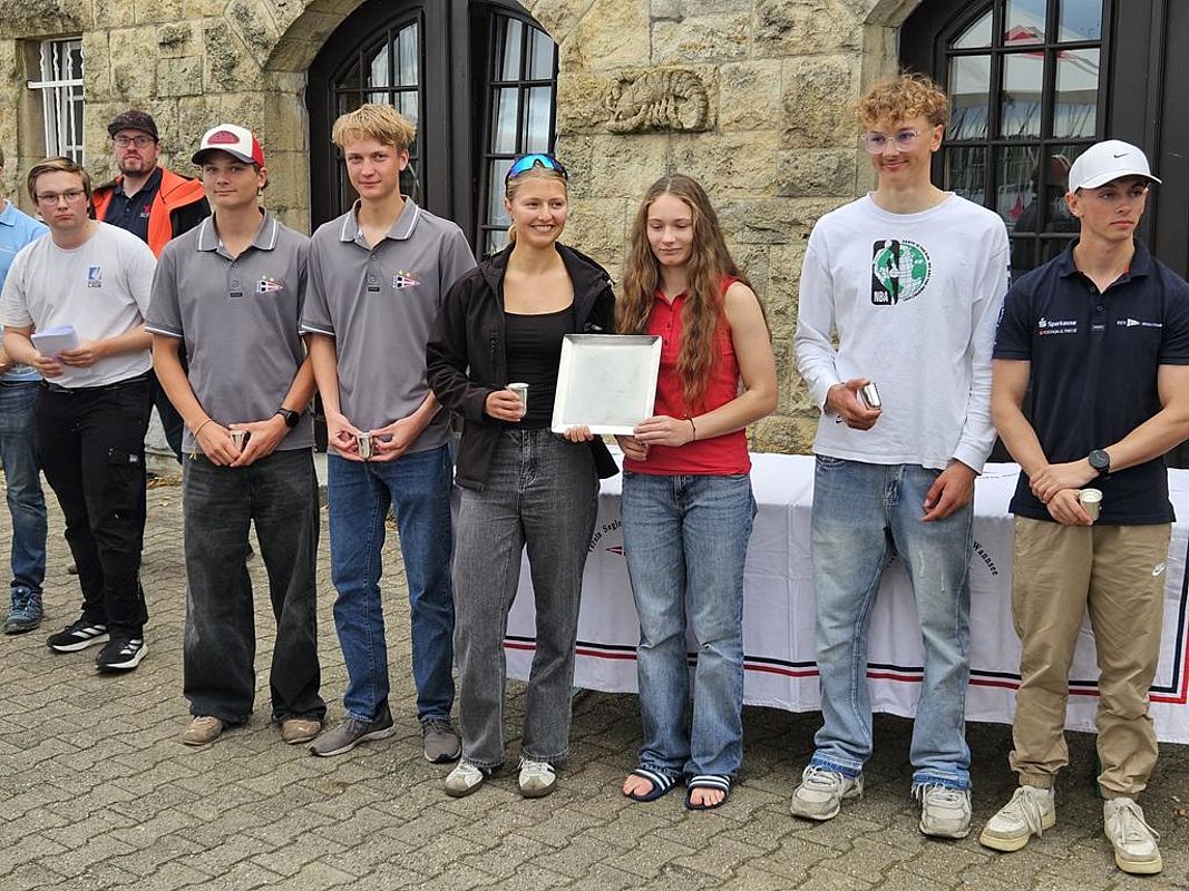 Der Sonntag war windmäßig etwas besser aufgestellt; die 420er und ILCAs schafften aber leider auch nur zu 2 Rennen, die 29er am Schluss auf drei. Julia zeigte sich gut aufgelegt auf dem Wasser; sie hat mit ihrem ‚alten‘ Opti-Trainer Harald Weichert an ihrer Seite den Seglerhaus-Preis 2025 bei den ILCA 6 gewonnen.