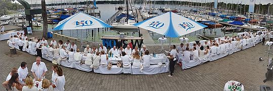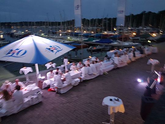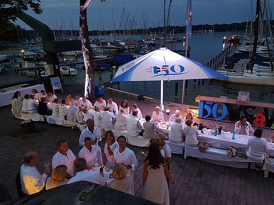 "Weiße Tafel" - unter diesem Motto stand der vergangene Samstagabend auf der Kaimauer des Vereins. Und - wie man auf den Fotos sieht - diesem Motto wurde auch die gewählte Garderobe gerecht.