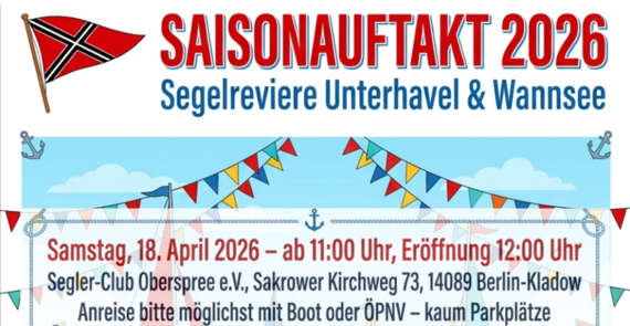 Die Seglerinnen und Segler des Reviers Unterhavel und Wannsee treffen sich am Samstag, 18. April 2026 beim Segler-Club Oberspree in Kladow (siehe oben). Ebenfalls am Samstag, 18. April 2026 wird im Revier Dahme und im Revier Müggelsee, hier beim  in Friedrichshagen, sowie im Revier Zeuthen beim Zeuthener Yachtclub gefeiert.